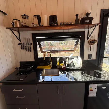 Köksfaciliteterna i villan Brisas Amarillas inkluderar vattenkokare, kylskåp och köksredskap, som finns i utomhusmatplats.